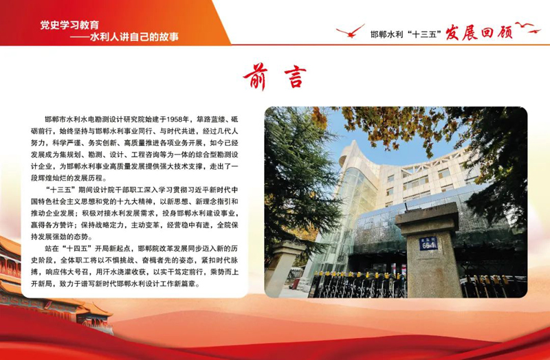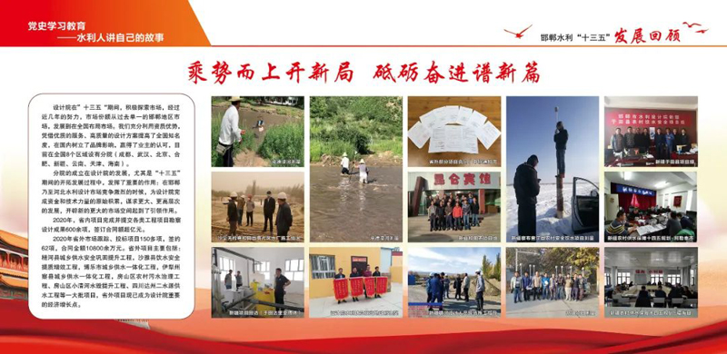 站在“十四五”開局新起點,邯鄲院改革發(fā)展同步邁入新的歷史階段,全體職工將以不懼挑戰(zhàn)、奮楫者先的姿態(tài),緊扣時代脈搏,響應偉大號召,用汗水澆灌收獲,以實干篤定前行,乘勢而上開新局,致力于譜寫新時代邯鄲水利設計工作新篇章。