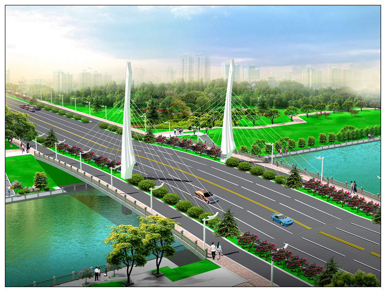 廣安路是廣平縣城區(qū)的一條主干道,廣平縣東風(fēng)渠橋是聯(lián)接?xùn)|風(fēng)渠西側(cè)現(xiàn)狀城區(qū)和東側(cè)規(guī)劃城區(qū)的重點(diǎn)工程。本橋跨越東風(fēng)渠,對于促進(jìn)東側(cè)規(guī)劃城區(qū)經(jīng)濟(jì)發(fā)展,完善廣平縣城區(qū)路網(wǎng)建設(shè),提升城區(qū)人文景觀形象,具有重要的意義,投資約2680萬元。橋梁全長92m,橋軸線與東風(fēng)渠正交,天鵝主塔高度為24.4m。廣平縣東風(fēng)渠橋?yàn)橹骺?0m的預(yù)應(yīng)力混凝土連續(xù)箱梁,其跨徑組合(16+30+30+16)m,橋面呈1/200雙向縱坡;兩橋頭引道總長120m,單側(cè)長60m,道路豎向呈1/30縱坡。本橋結(jié)構(gòu)可靠度設(shè)計(jì)基準(zhǔn)期為100年。