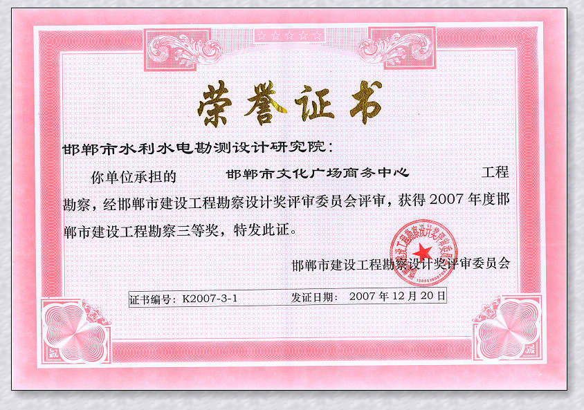 邯鄲市文化商務(wù)廣場2007勘察三等獎