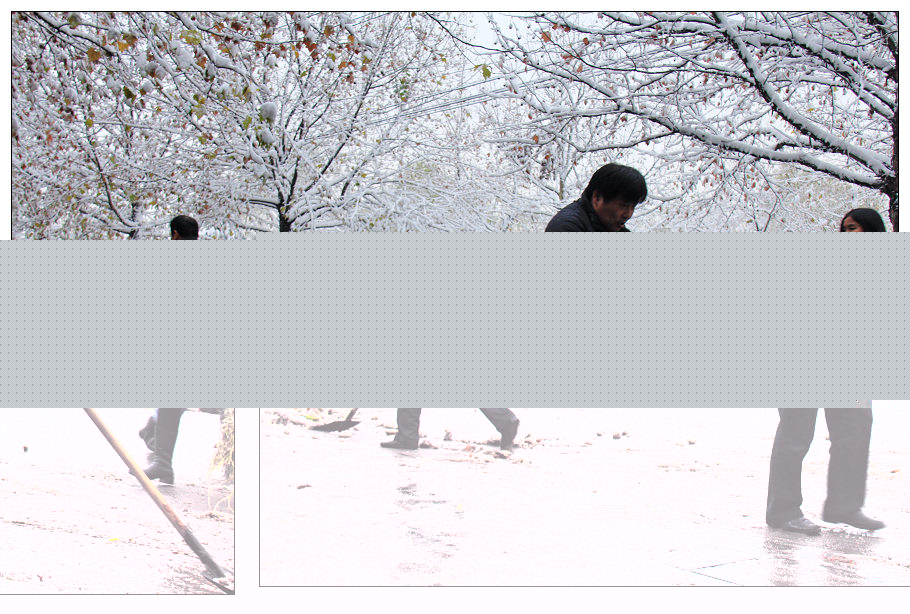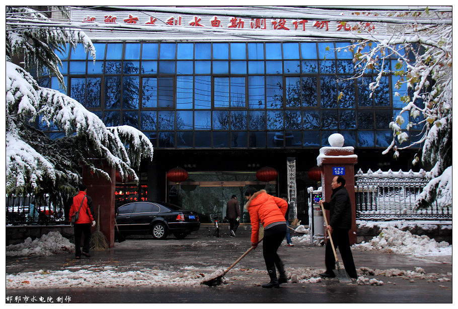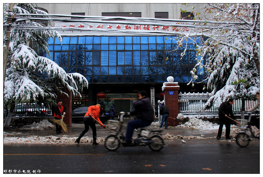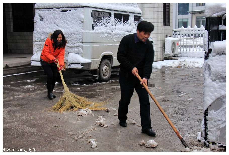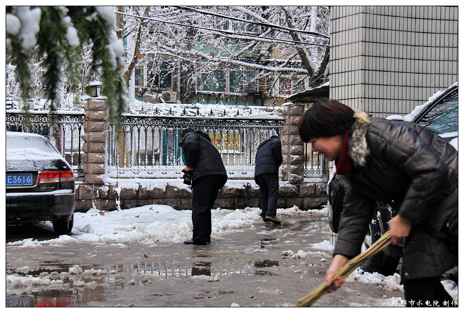 不到八點,提前半個小時來到單位的職工,在沒有任何的召集和通知的前提下,依靠自覺和奉獻的精神,自發(fā)地拿起鐵釬和掃帚,在瑟瑟清冷的冬季早晨冒著嚴寒清理積雪,為路上的行人和后續(xù)來到的職工掃清泥濘和障礙。