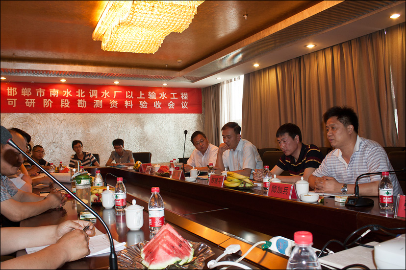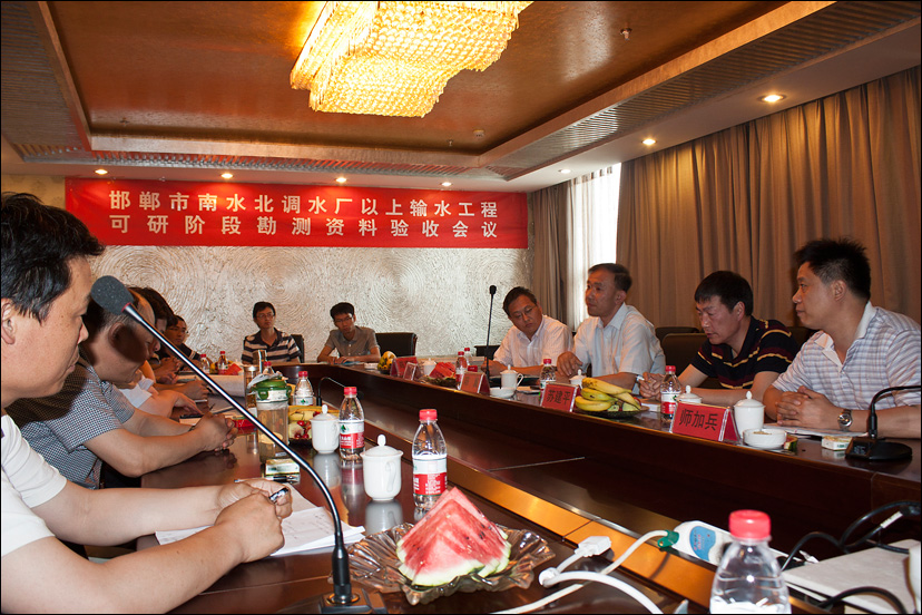 邯鄲市南水北調(diào)水廠以上輸水工程可研階段勘察資料驗收會議于2012年6月在新梅林大酒店召開。
