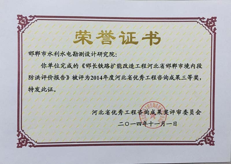 2014年度河北省優(yōu)秀工程咨詢成果三等獎